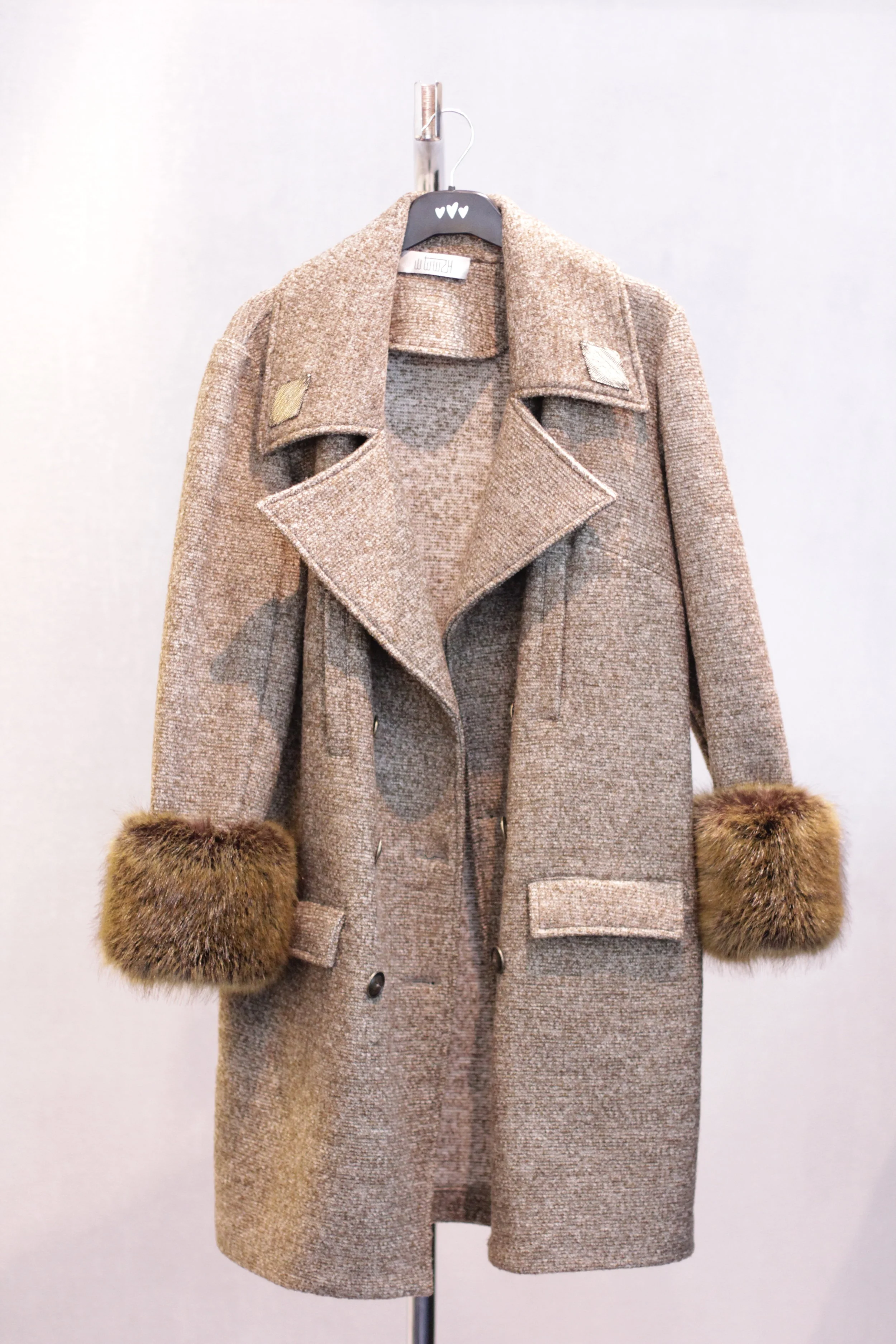 woolen blended coat with faux fur