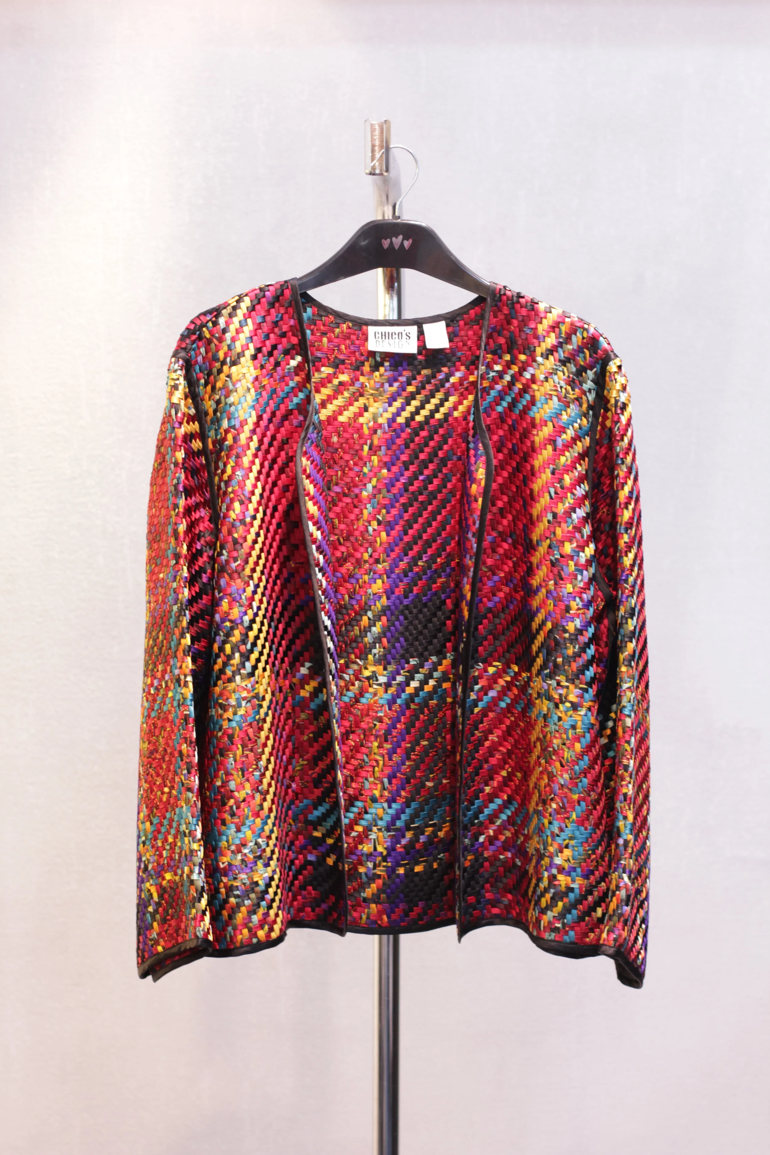 custom colored yarn dye plaid with vegan leather trim