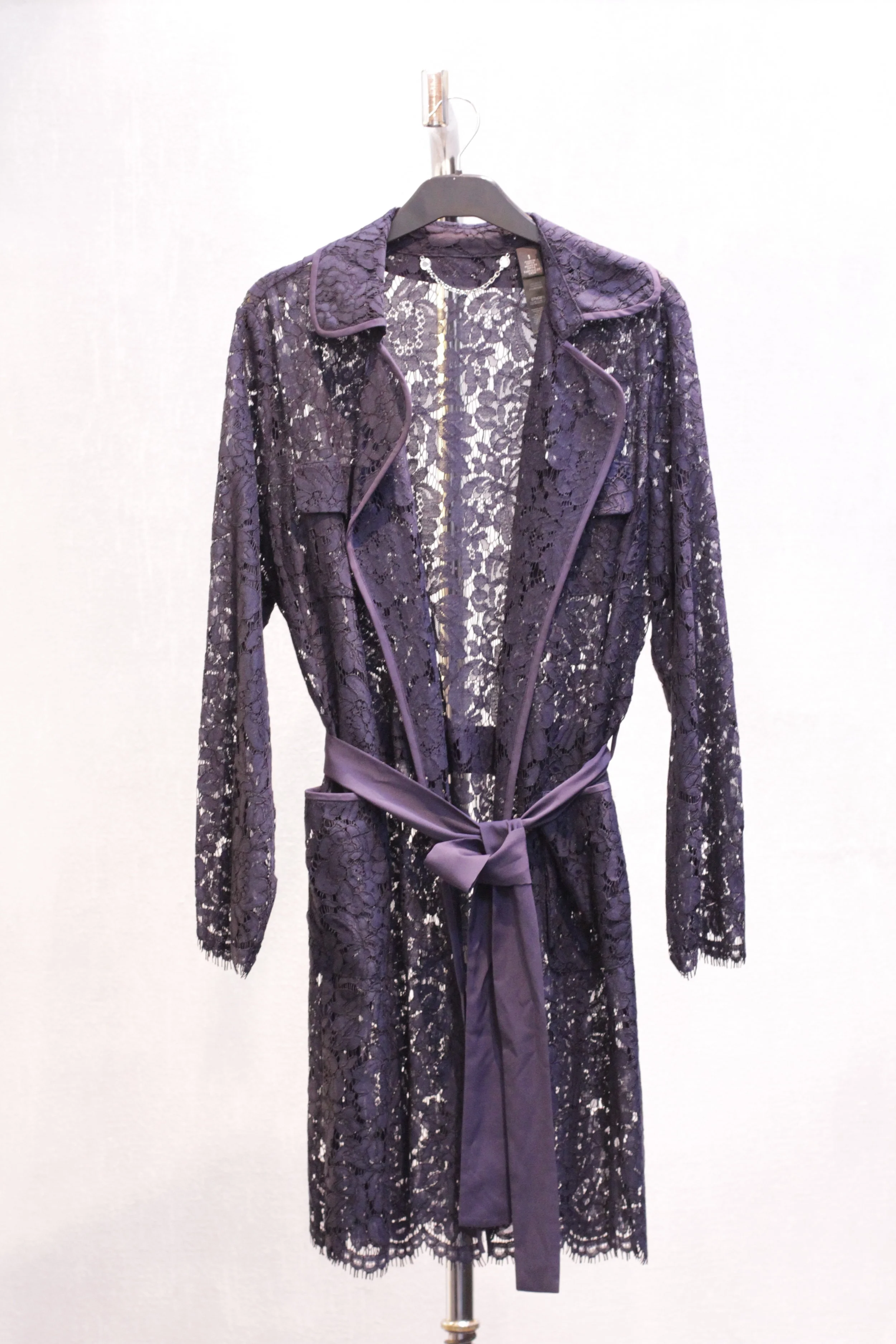 lace trench with silk satin trim